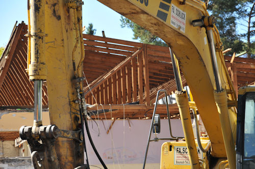 alter Kindergarten Abrissbagger Neuer Kindergarten
