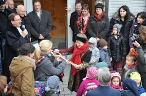 Gemeinde zur Einweihung Schlüsselübergabe Leiterin des Kindergartens Anja Foliko